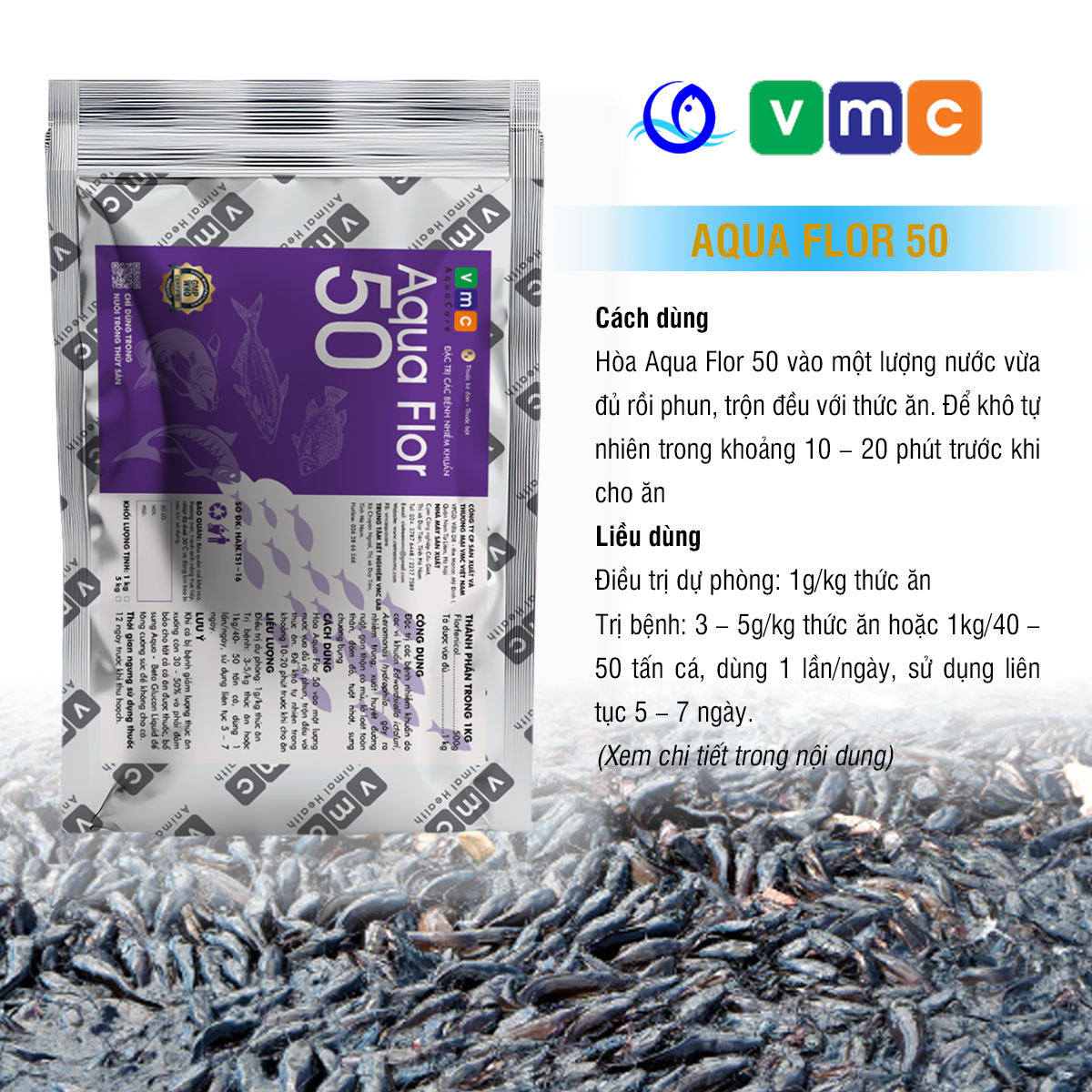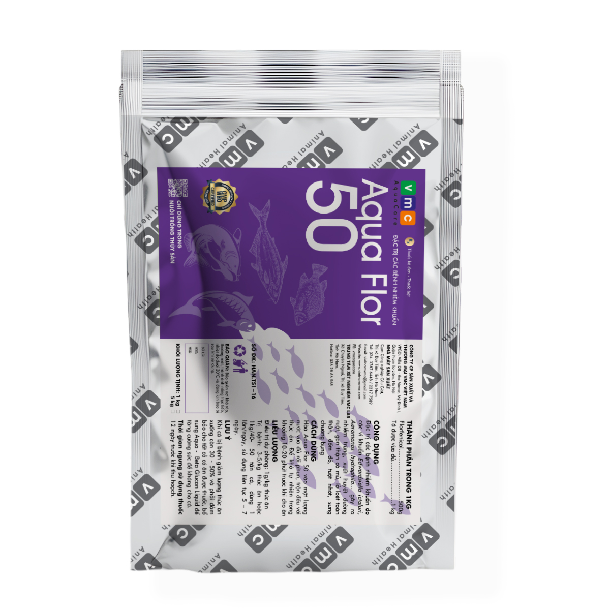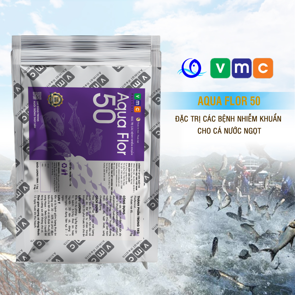 AQUA FLOR 50 – Đặc trị nhiễm khuẩn, xuất huyết đường ruột…trên cá (1Kg)