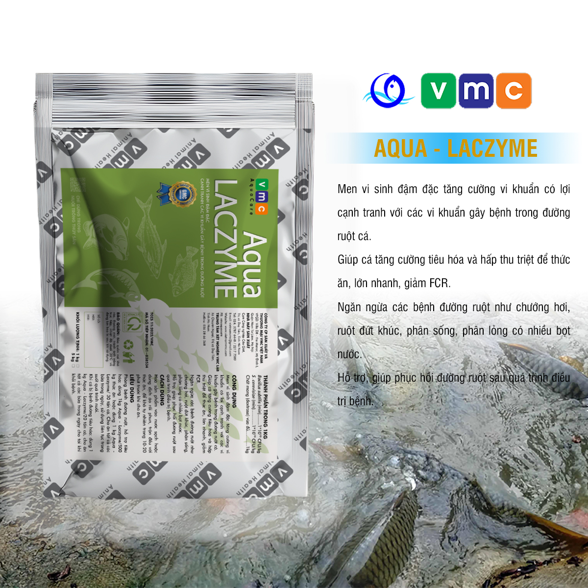 - AQUA LACZYME – Men vi sinh cung cấp một lượng lớn vi khuẩn có lợi, giúp chúng chiếm ưu thế và cạnh tranh không gian sống, chất dinh dưỡng với các vi khuẩn gây bệnh trong đường ruột cá.