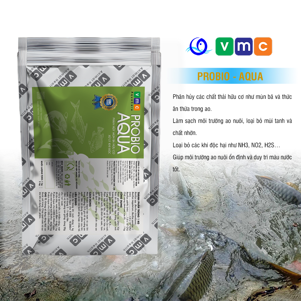 Probio Aqua là một giải pháp hiệu quả để xử lý môi trường ao nuôi giúp cá khỏe mạnh, nhanh lớn, giảm mùi tanh.