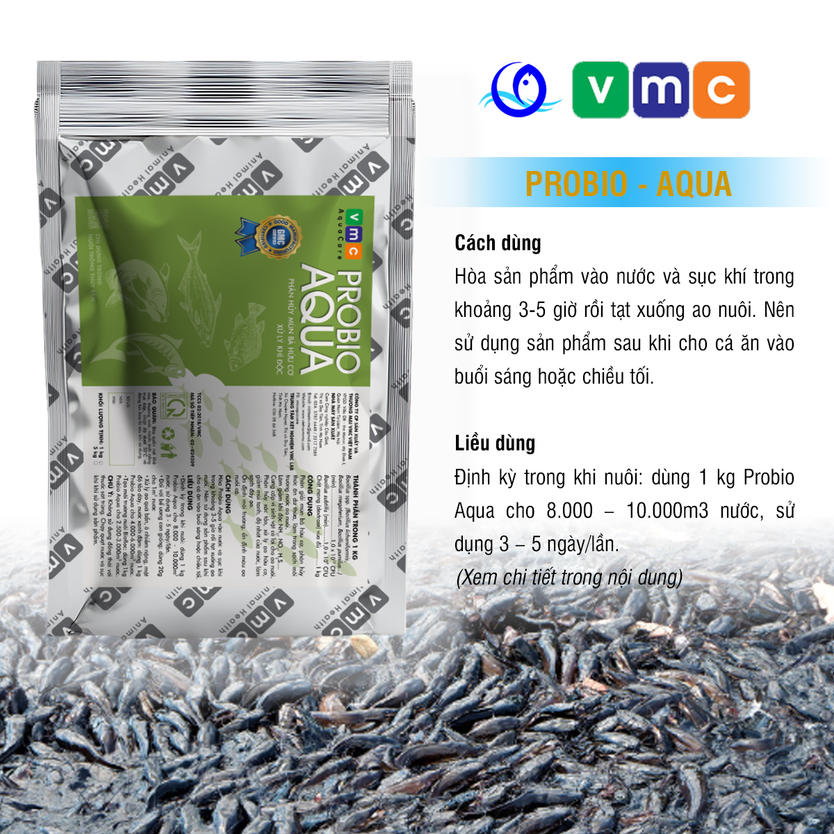 - Định kỳ trong khi nuôi: dùng 1 kg Probio Aqua cho 8.000 – 10.000m3 nước, sử dụng 3 – 5 ngày/lần.
